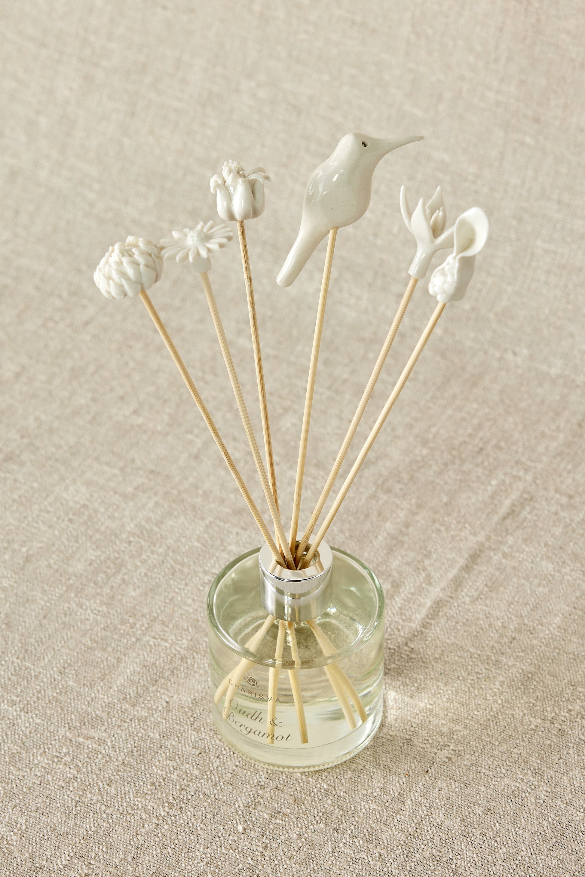 Experience the essence of Africa with our African Garden diffuser flowers. Crafted from porcelain and mounted on bamboo, this reusable set features 5 exquisite blooms. From the courage of the King Protea to the charm of the Blushing Bride and the vibrant Clivia, each flower carries a unique symbolism. The Namaqua Daisy and Agapanthus bring desert beauty and tenderness. Elevate your room's ambiance with these fragrant and elegant additions to any diffuser.