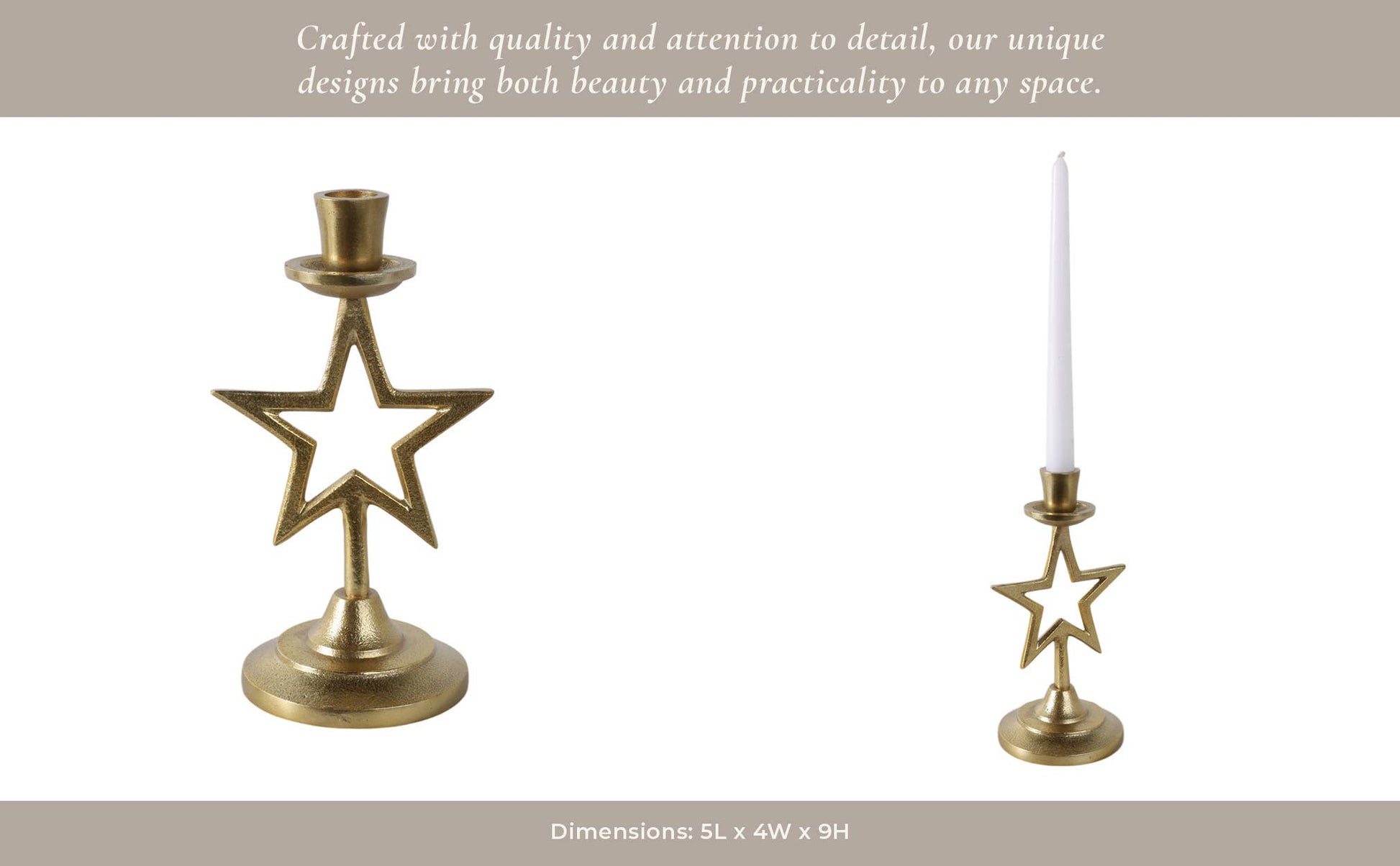 • ELEGANT BOHO-MODERN DESIGN - Crafted with a sleek finish and geometric star shape, this candle holder effortlessly enhances any space, blending bohemian and modern aesthetics for a sophisticated tabletop centerpiece, mantel display, or dining decor.