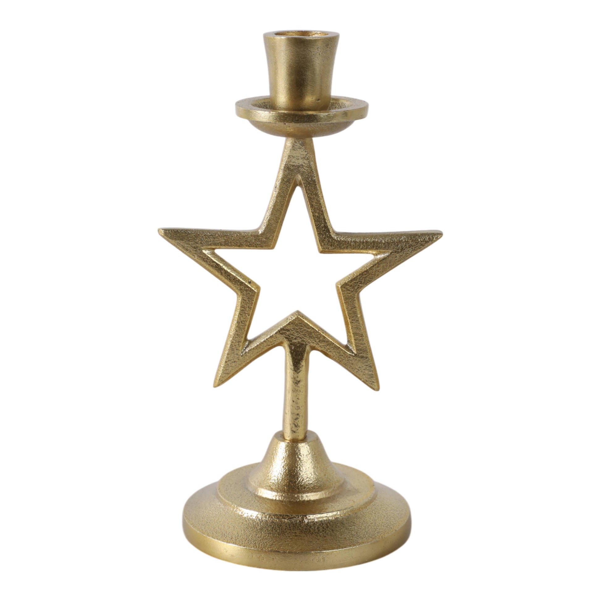 Aluminum Boho Cut-Out Star Taper Holder - Gold, 9 in.