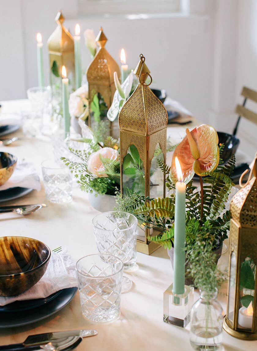 These metal lanterns have an antiqued bronze finish and clear glass panes on all sides. Their detailed touches and slim profile make them very versatile for many a garden, party, or wedding. Choose from our 13-inch bronze Mahal lantern or 16-inch Taj Square lantern, depending on your style. The Mahal lantern features six rectangular panels and a rounded base, while the Taj Square style has four glass panels and a wide, pointed base. Combine both antique Indian lanterns for a unique display and visual layering.