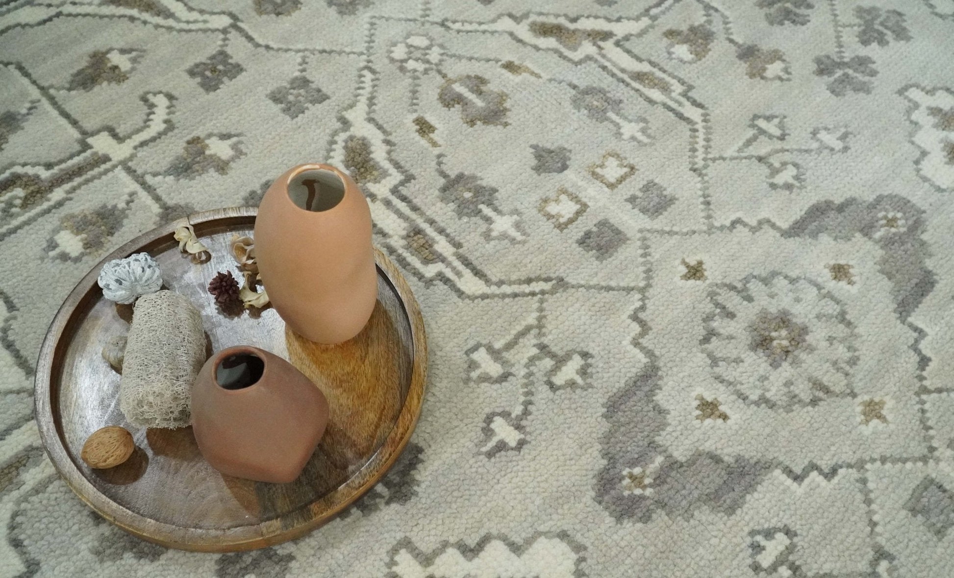 This Wool Area Rug features an antique look, traditional design, and a beautiful color combination of silver and olive. Perfectly hand-crafted, this Oriental Oushak rug is 8x10 and ideal for making a statement in your home.