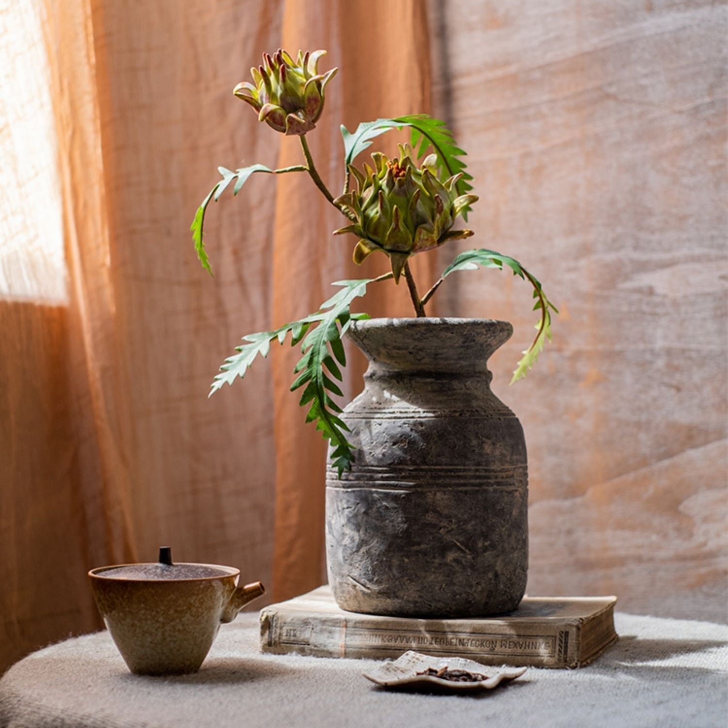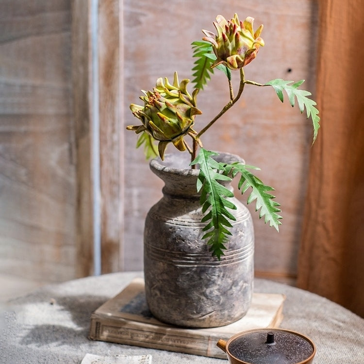 Artificial Artichoke Flower Stem in Red Green 23" Tall