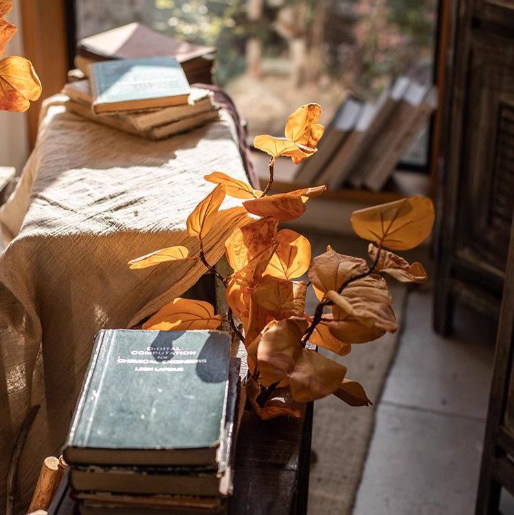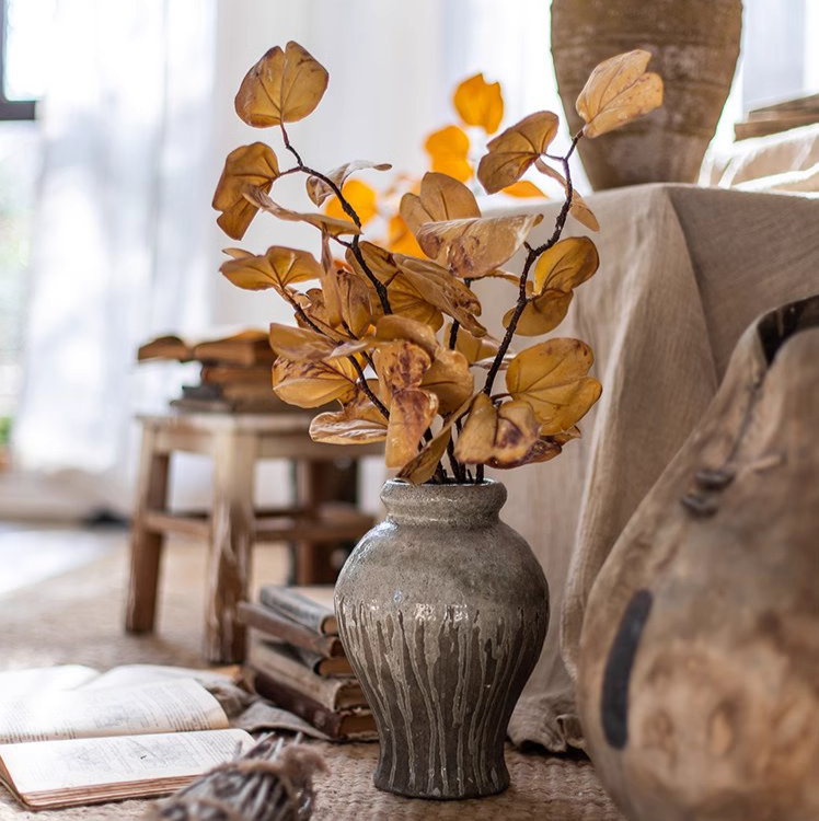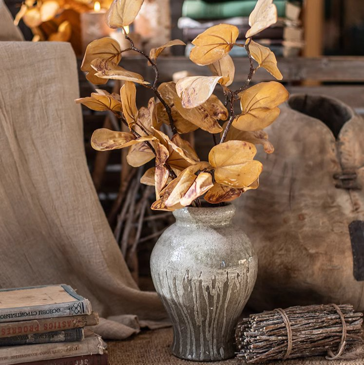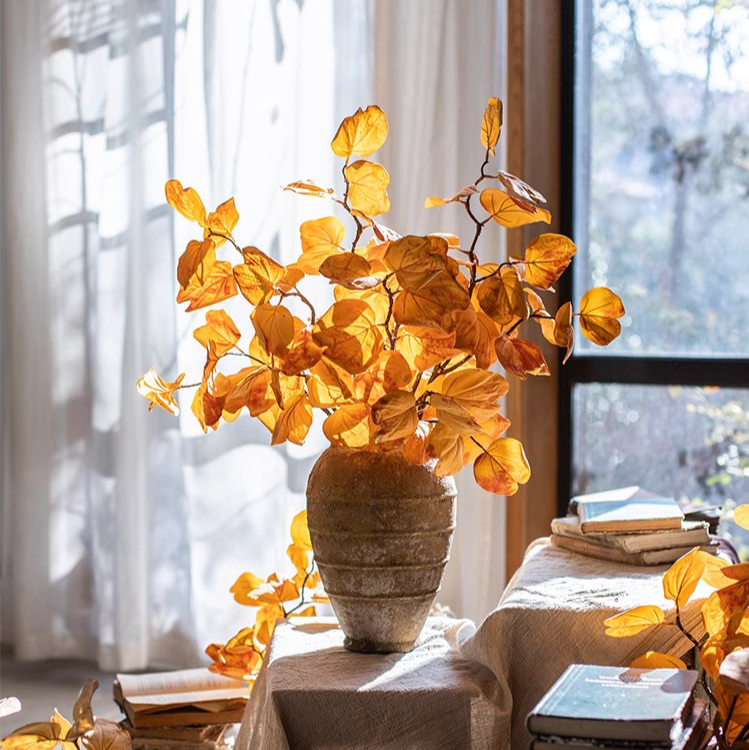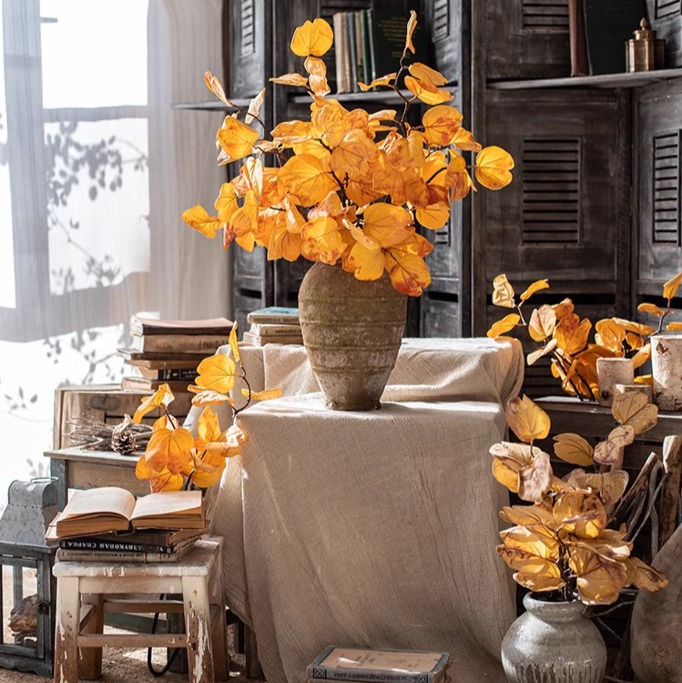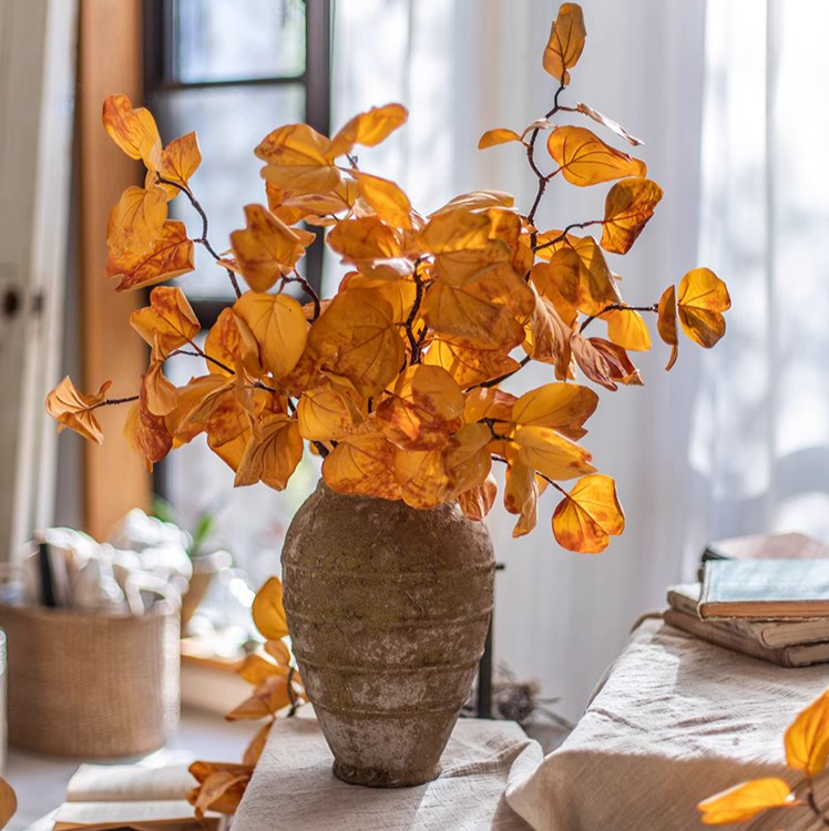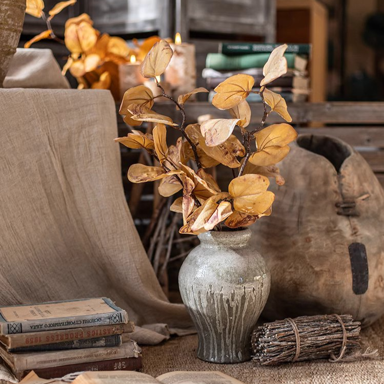 Artificial Dry Apple Leaf Stem 33" Tall Faux