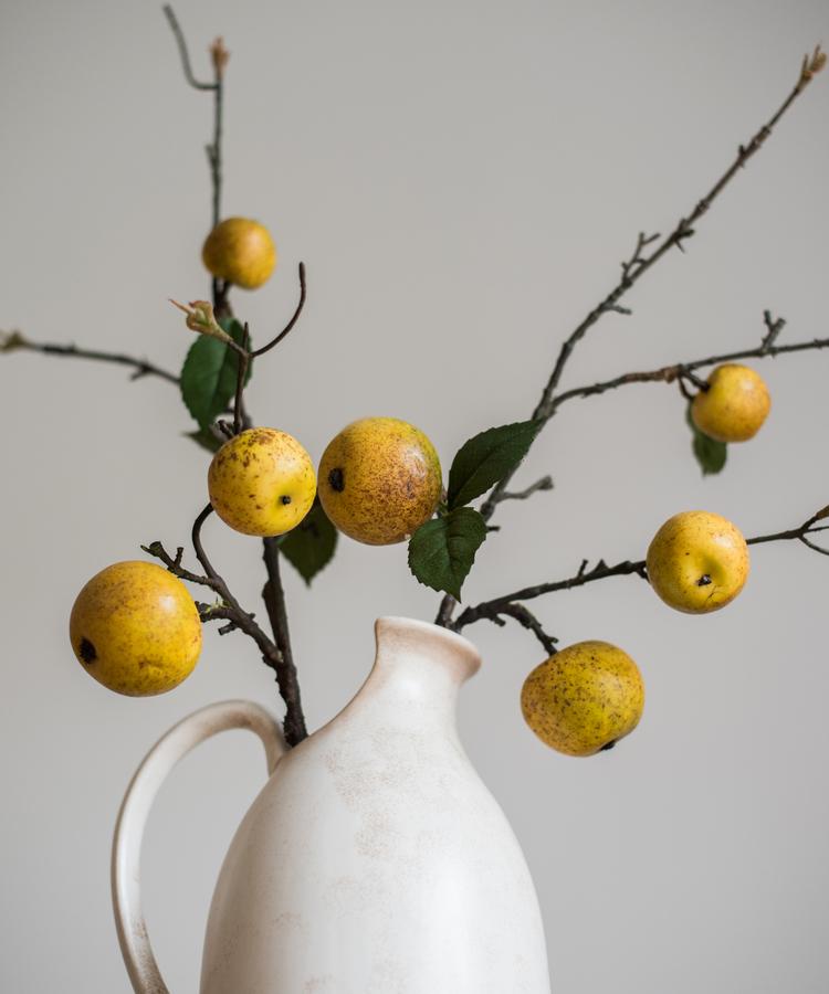 Artificial Fruit Yellow Apple Pear Stem 27" Tall