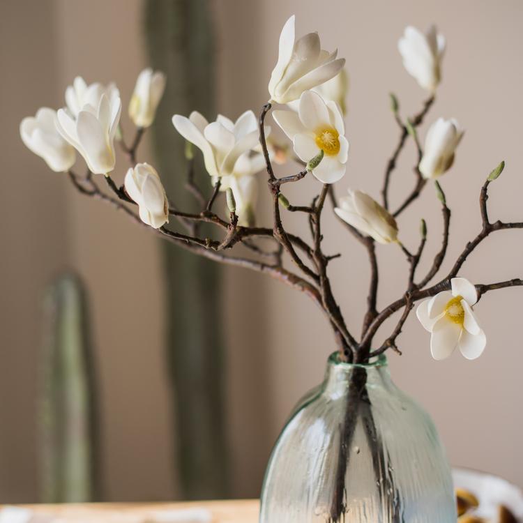 Magnolia is famous ornamental flowers in early spring. It is full of purplish red flowers on branches and brims with amorous feelings. The flower language for it is a noble soul, which is quite different from the language we use to talk about flowers and it is just like its flower language, clean and simple, without too much decoration, so it is a good choice to make it as a gift for teachers on teacher's day to express your respect and admiration for the noble soul of your teacher. Magnolia is not common in our daily life and we can barely see it in street, because it is difficult to cultivate. In order to appreciate its beauty and keep its original shape, artificial magnolia is the crime of choice. Its advantages are obvious as below. The petal is printed and dyed based on environmental protection. The flowers are rich gradation, true colors and full of reality. The leaf stem are exquisite, whose texture, colors and making are true to nature with a realistic style in good quality. Magnolia is suitable for a variety of family decoration styles, no matter in living room, hall way or bedroom, it is a light spot.