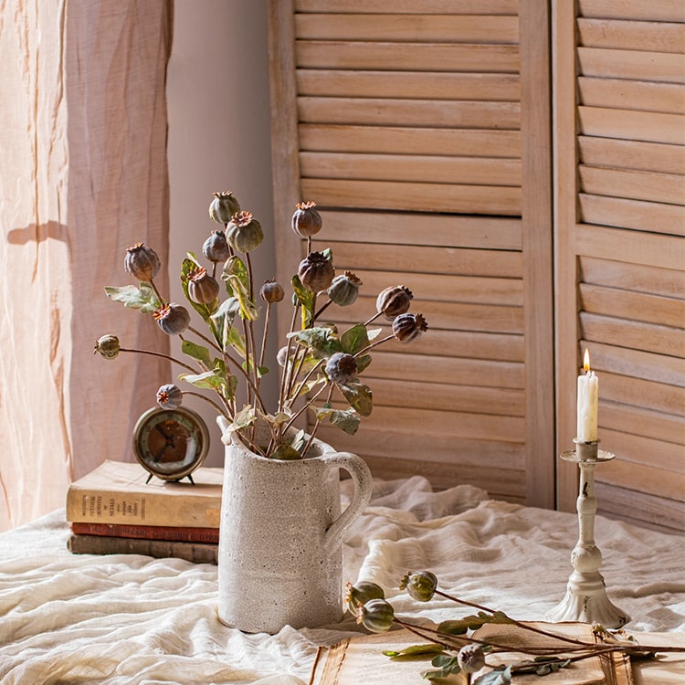 Artificial Poppy Fruit Stem 23.6" Tall Silk Plant