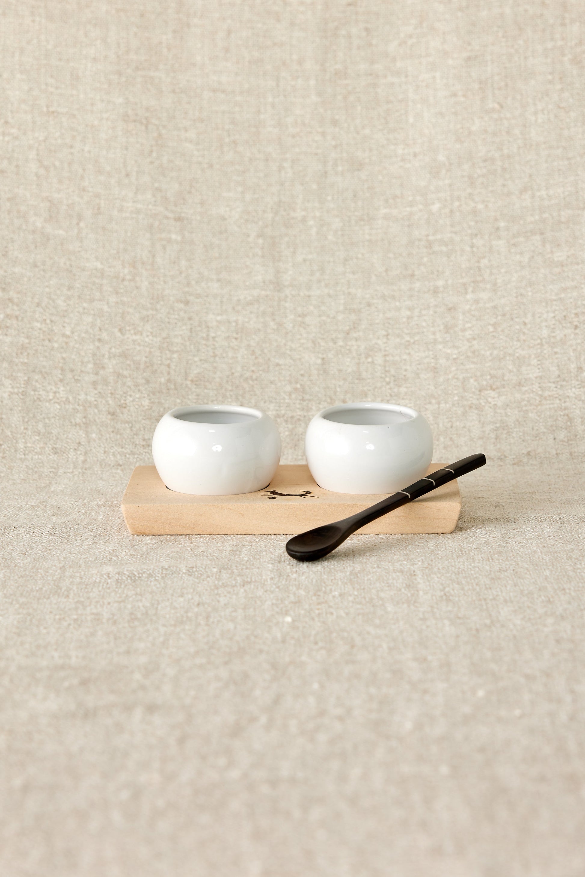 Dipping & Spice Wooden and Ceramic Bowl Pair