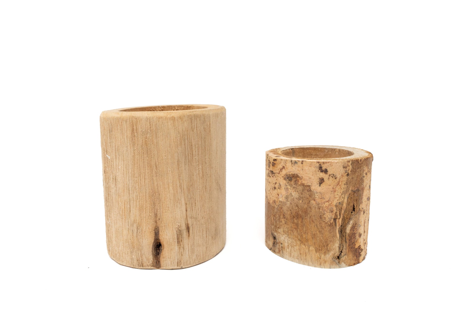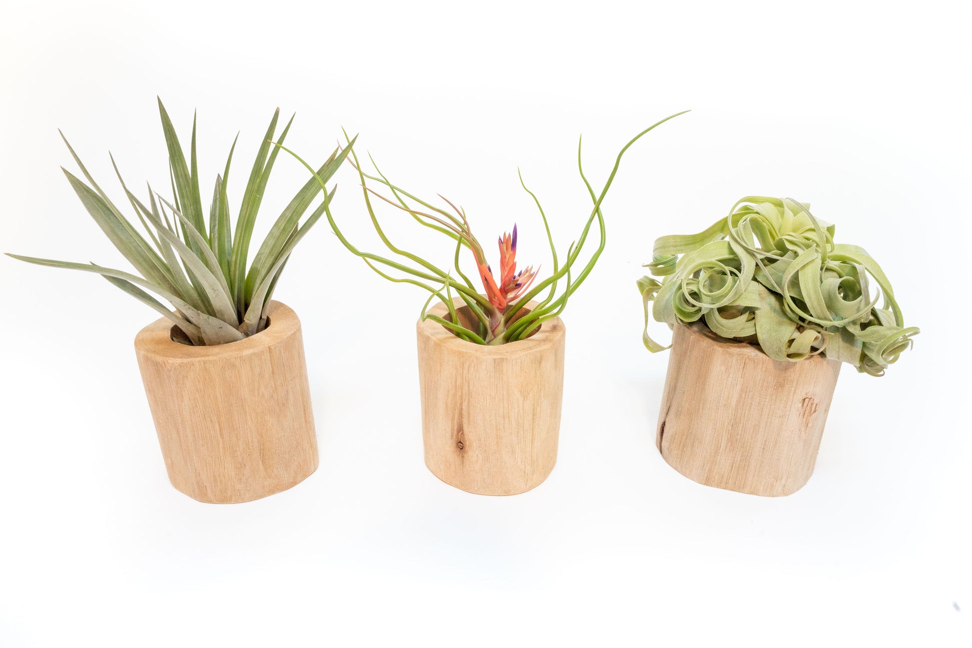 Our hand-carved driftwood containers are made from sun-bleached wood stumps and are a beautiful container for many of our medium to large sized air plants. There are some cracks and imperfections in the wood as every piece is unique.