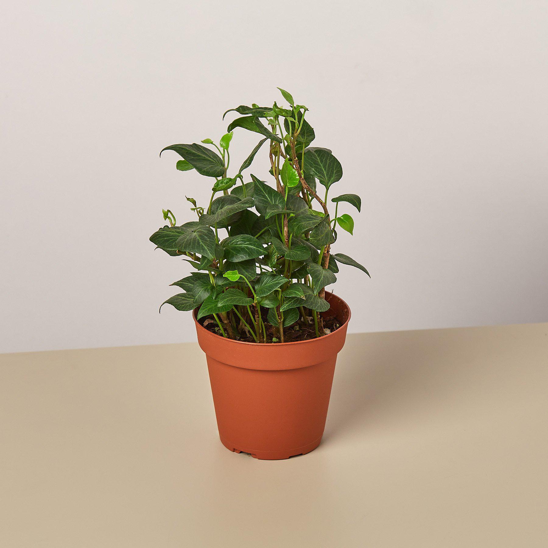 - Description: A moderate to easy, fast-growing large-leafed evergreen vining plant with attractive glossy, tear drop shaped dark green leaves with whitish to light green veining on vines that trail, climb, and cascade. One of the best choices for a fast-growing screen or ground cover.