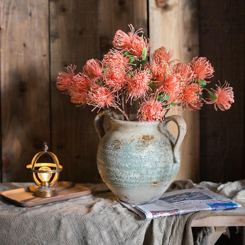 Faux Silk Artificial Pincushion Flower Stem 24" Tall
