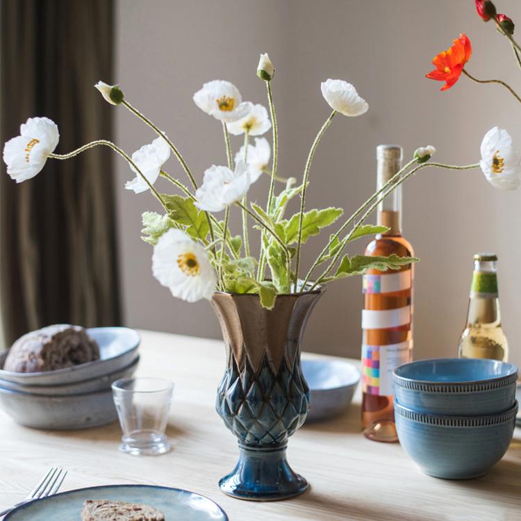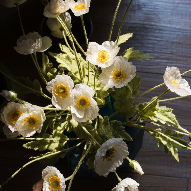 Faux Silk Silk Common Poppy Flower Stem in Pink or White 22" Tall