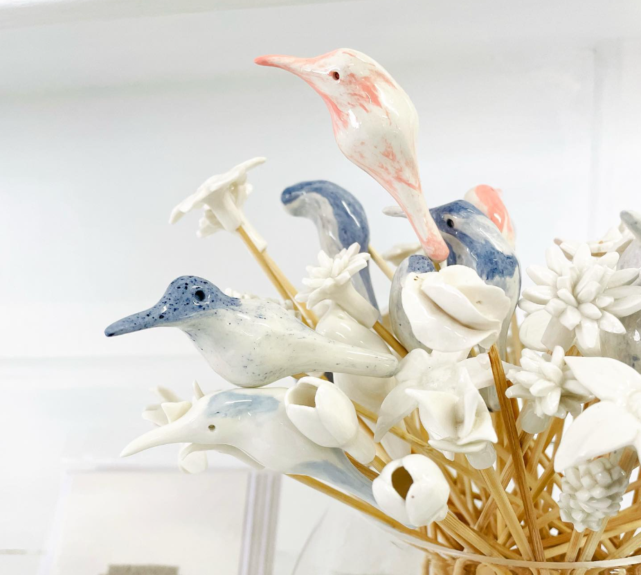 Our Glazed Sunbirds Bamboo Diffuser Set is a fusion of art and fragrance. Crafted from porcelain, these exquisite sunbird sculptures perch on bamboo stems, creating a stunning visual and olfactory experience. Fill your home with elegance and a soothing aroma as these hand-crafted birds absorb and release your chosen scent. Elevate your space with the beauty of nature and the artistry of design. A unique addition to your decor and ambiance.
