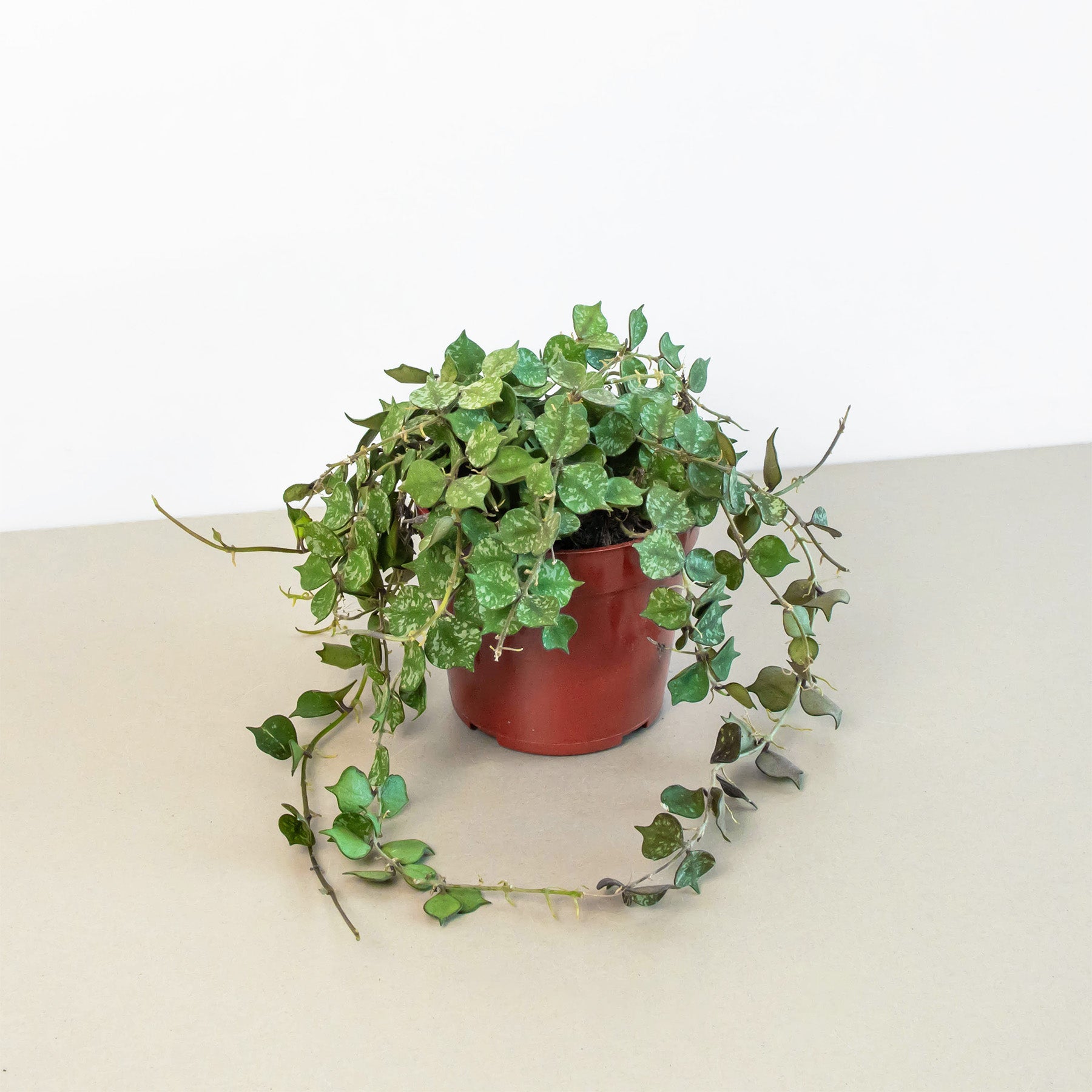 - Description: Hoya curtisii is a miniature trailing hoya. This form of curtisii has small round olive green leaves mottled with grey. The apex is pointed on the thick succulent leaves. This will make a tight mat over the soil surface and then hang down.