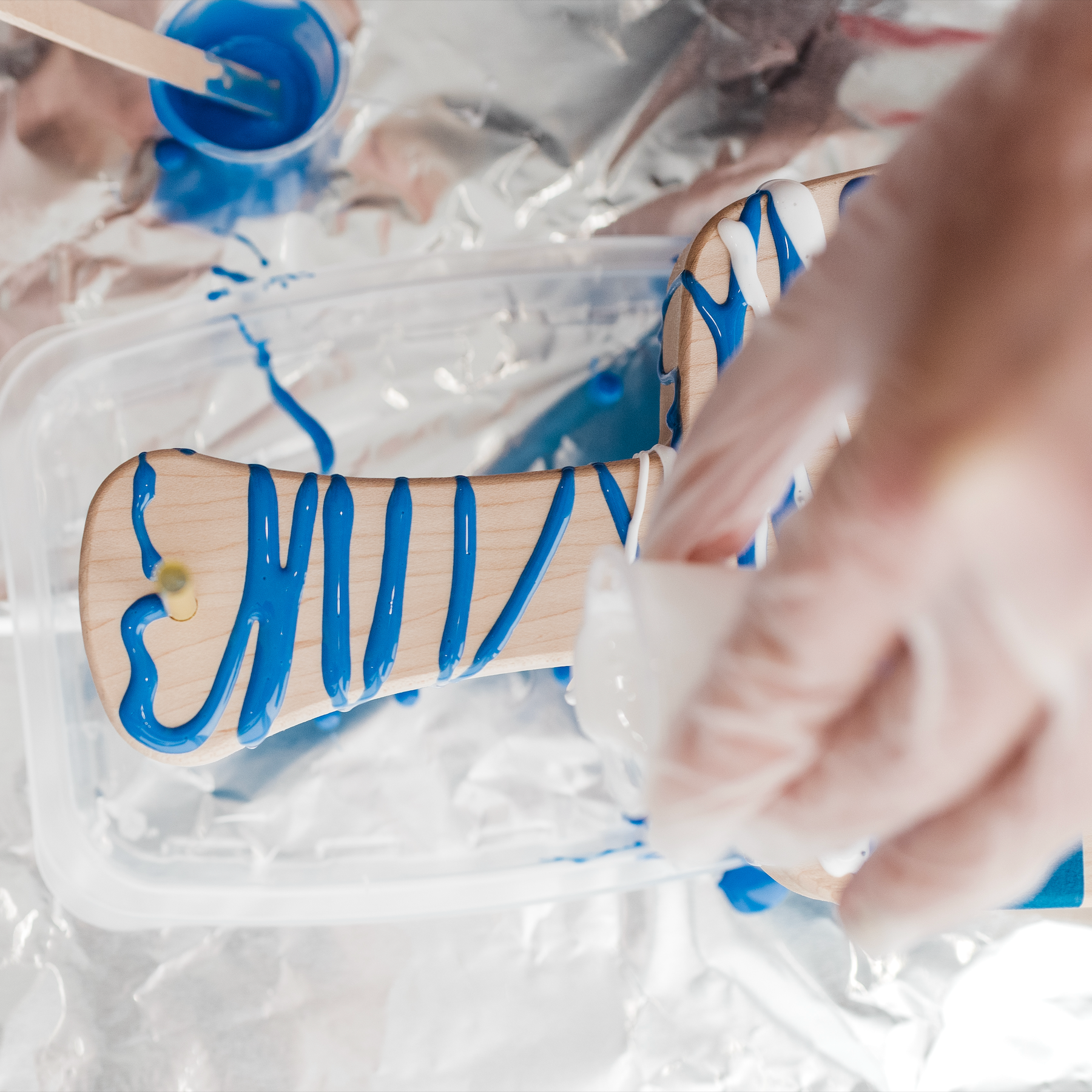 This craft kit comes with epoxy resin, paint, vinyl wraps, and all the necessary materials to create beautiful marbled designs. Crafters will need scissors, a cup, and tin foil.