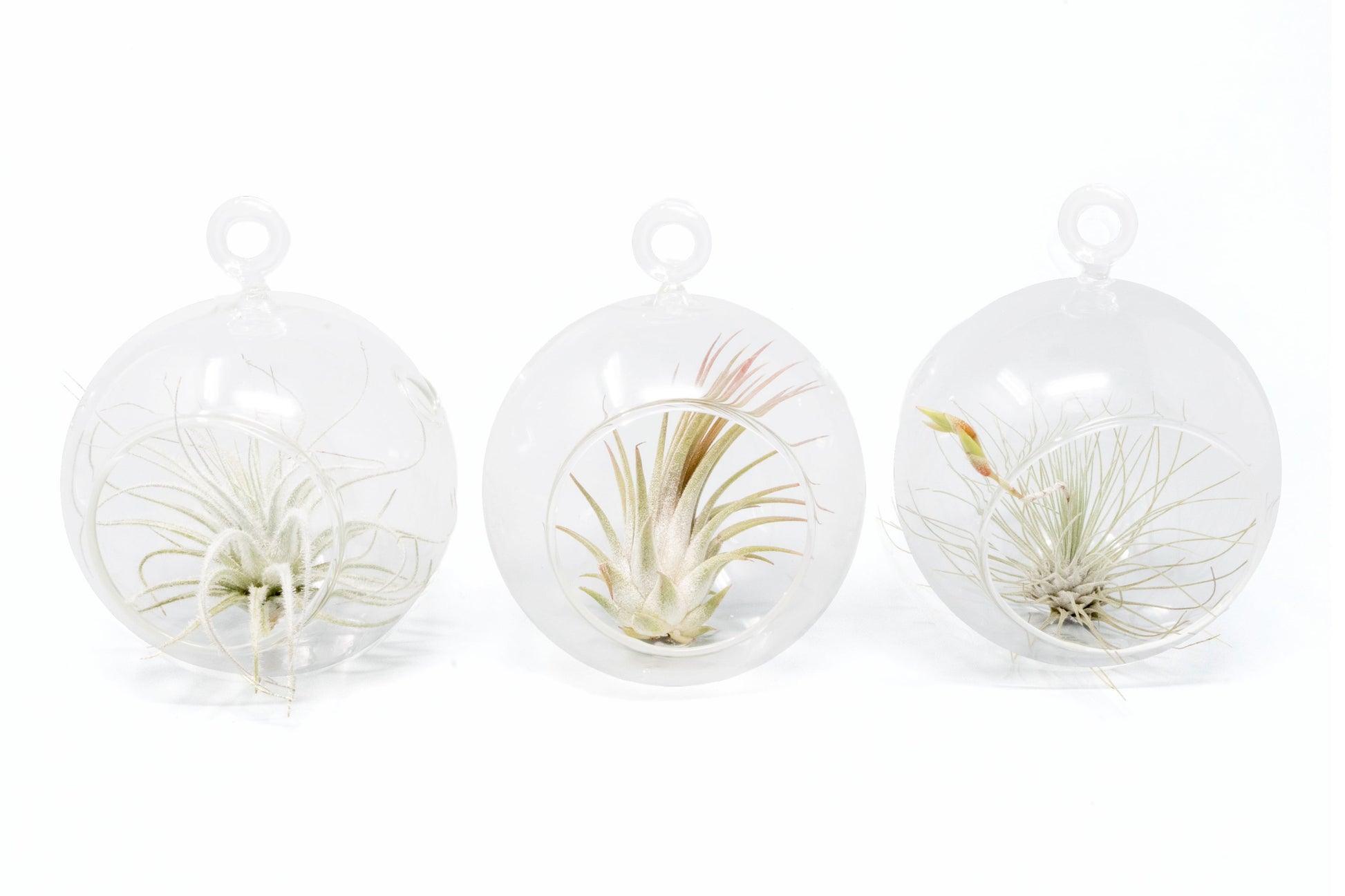 Mini Hanging Flat Bottom Glass Terrariums with Assorted Tillandsia Air Plants