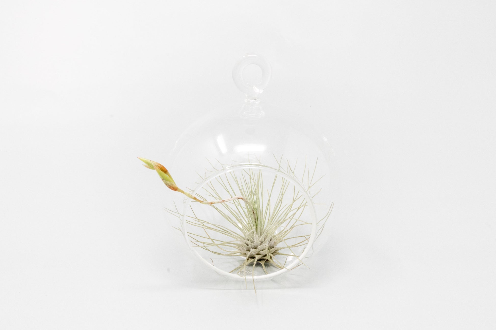 These cute mini glass terrariums are perfect for our small variety air plants. The elegant beauty of this minimalist terrarium compliments any room. They have a hook for hanging or you can place them on their flat bottom.