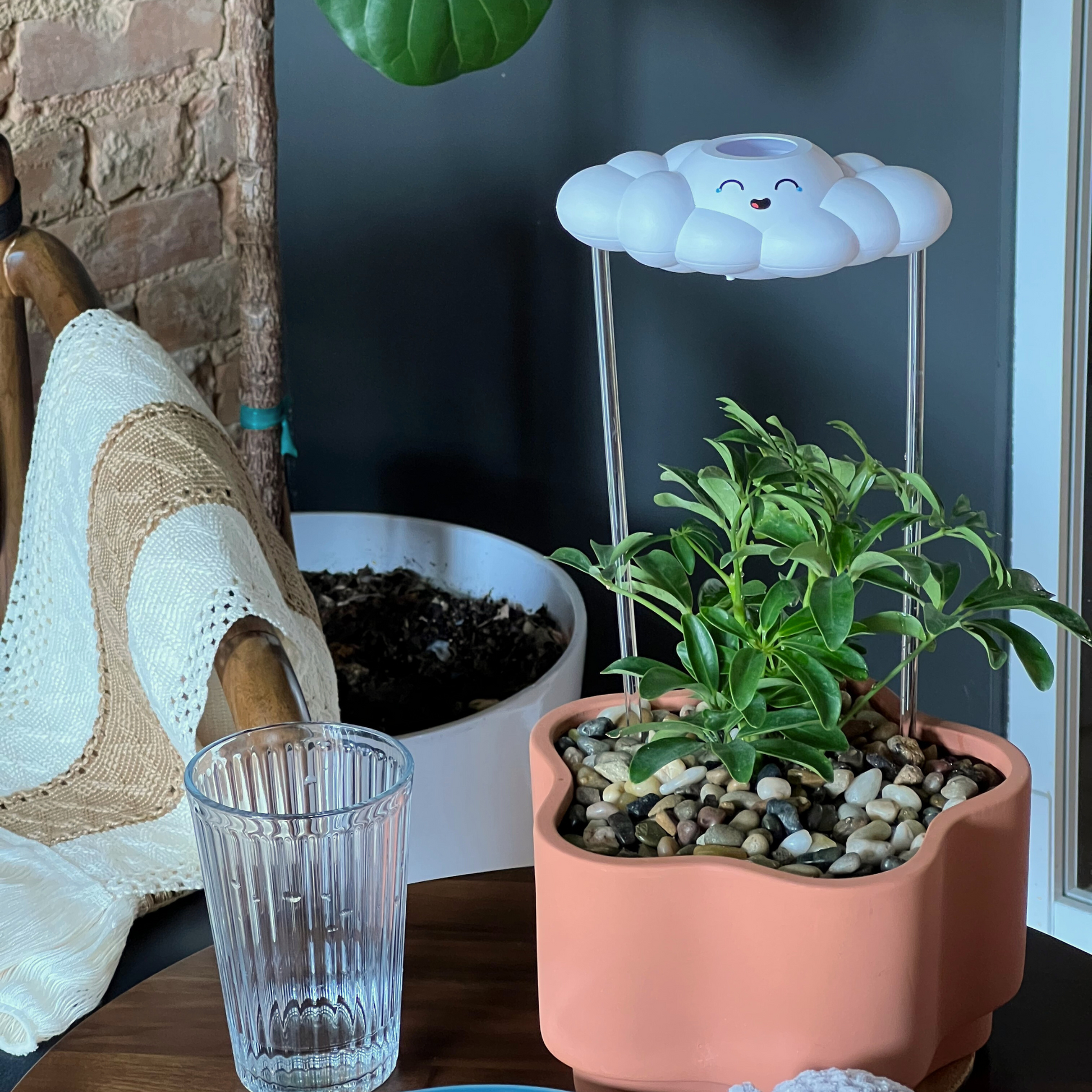This is Misty, our chatty rain cloud. She always has something to say. About plants, about the weather, about how your outfit looks today. But just because she's always talking doesn't mean she's not also always ready to help your houseplants thrive with her gentle shower.