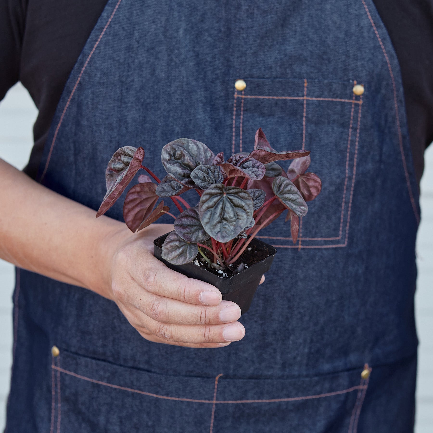 - Description: The Peperomia is a perennial epiphyte native to the tropical regions of Central and South America. It's short and sturdy stems wield thick, circular leaves which are a deep burgundy color and retains most of its water. The Peperomia is very easy to care for and requires similar care habits to most succulents making it a great addition to any desk or shelf.
