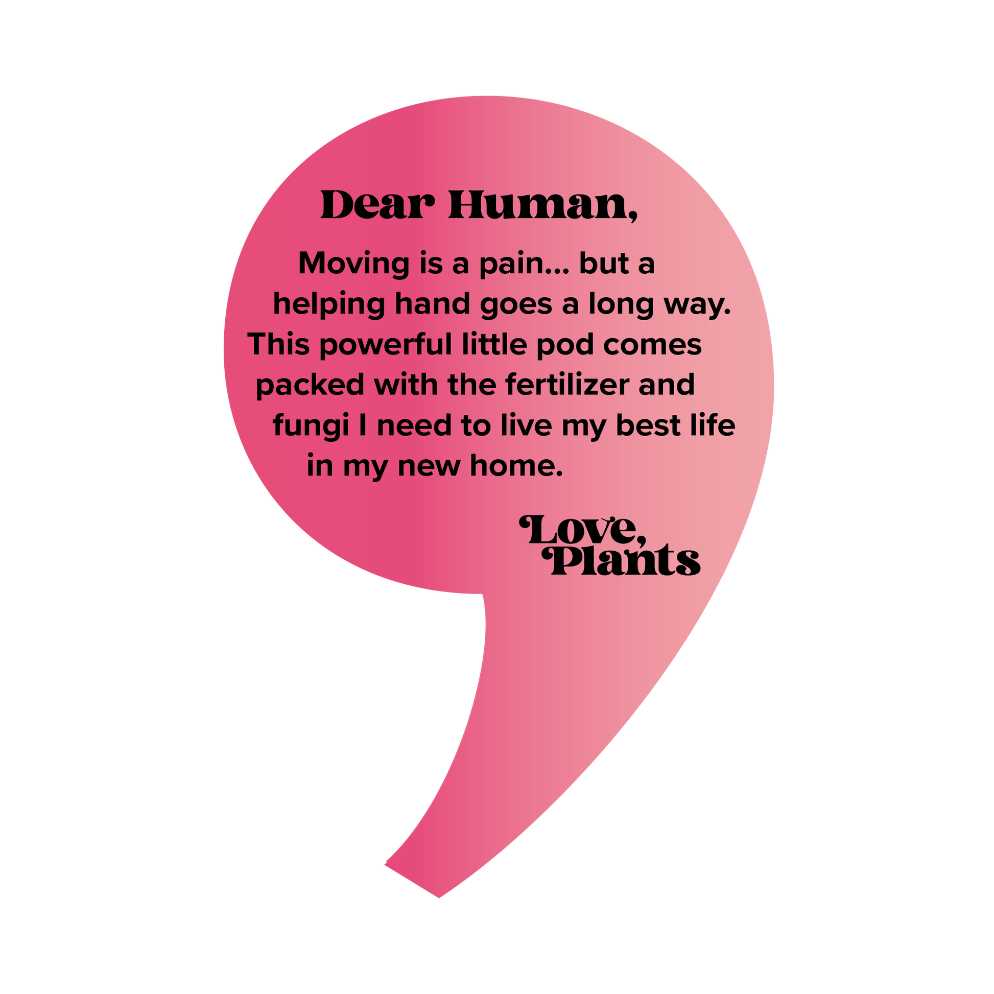 Moving is a pain, but a helping hand goes a long way. Simply drop a pod in the new pot to help your plant babies find zen in their new homes.