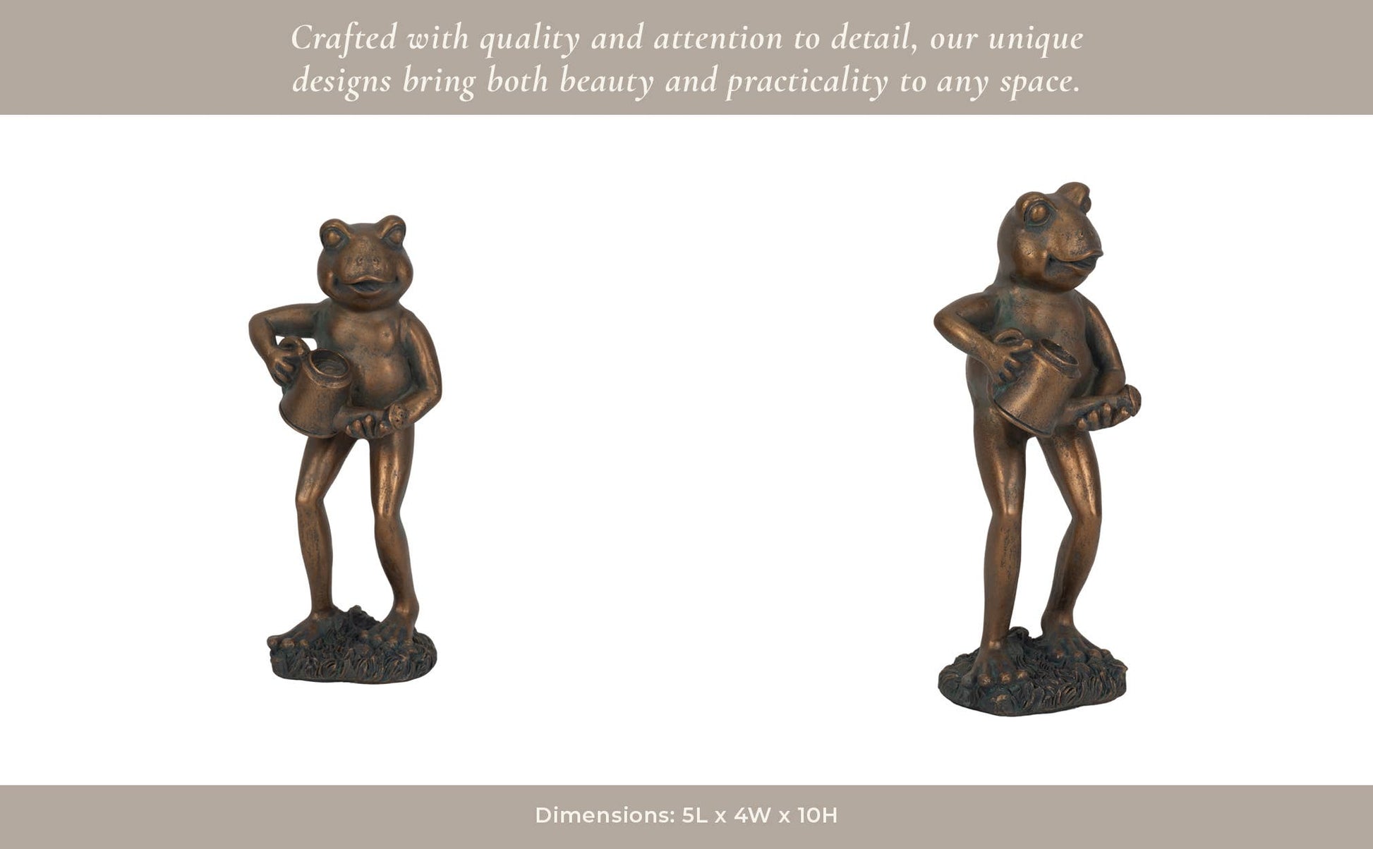 Resin Frog and Watering Can Garden Statue - Bronze, 10 in.
