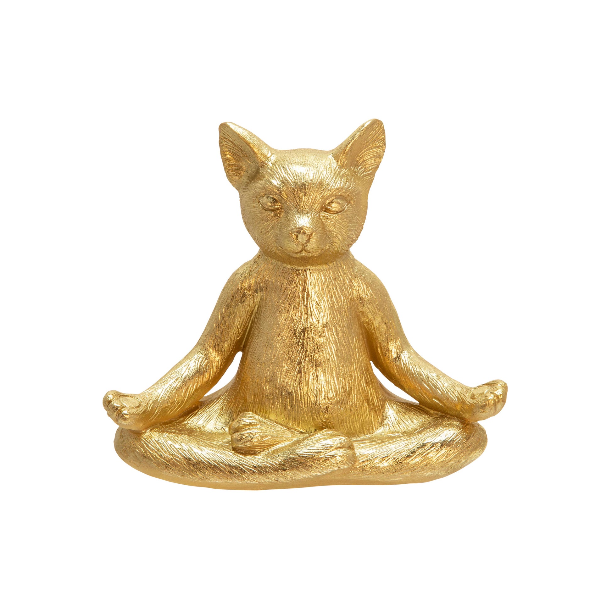 Resin Modern Cat Figurine in Meditative Pose - Gold, 7 in.