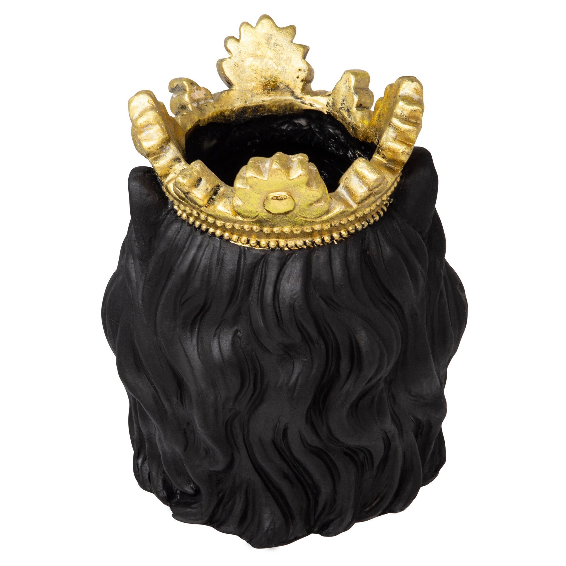 Resin Regal Lion Head Planter with Crown - Black, 9 in.