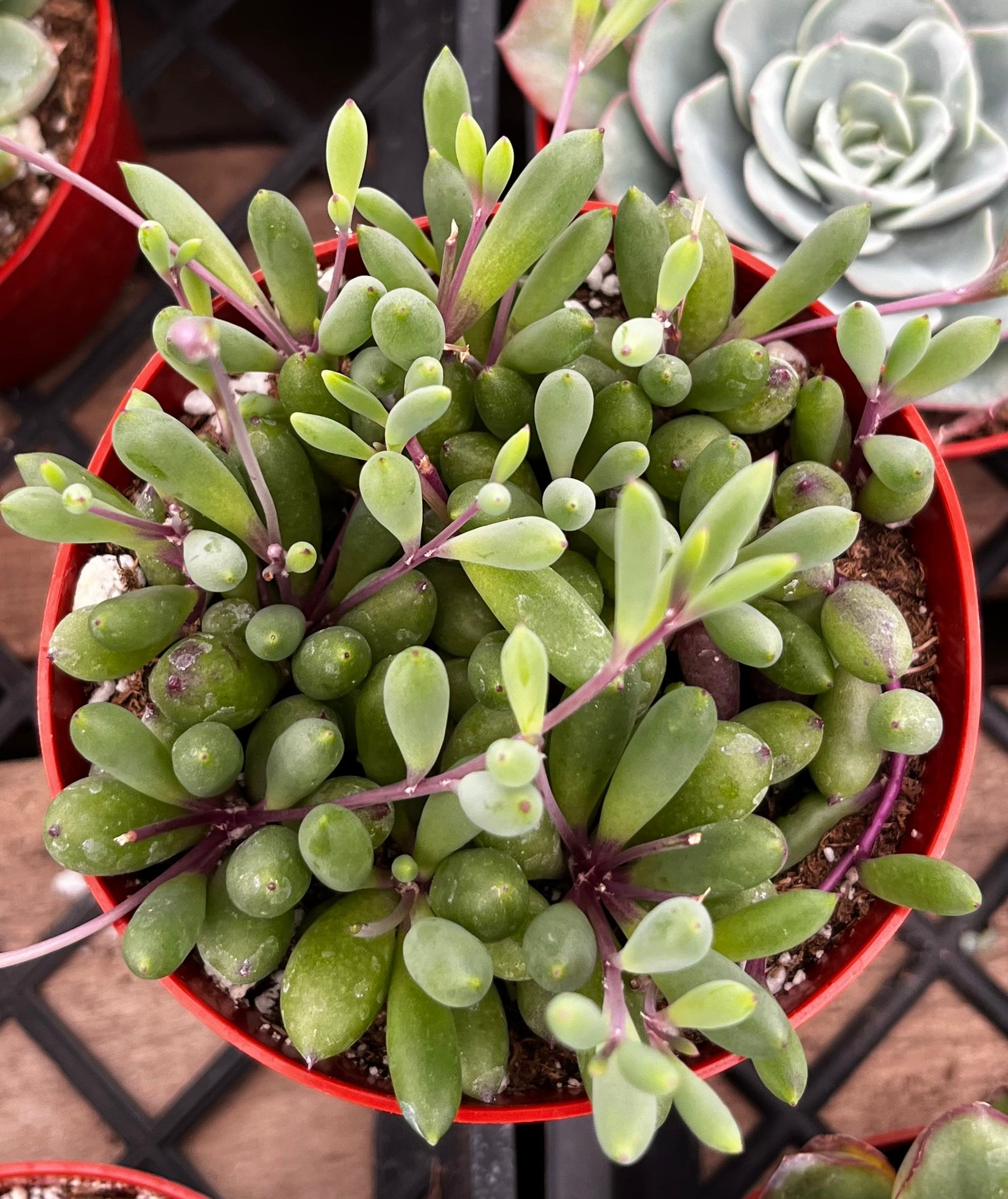 Introducing the Ruby Necklace Succulent, a radiant gem in the world of succulents. With its striking hues and cascading tendrils, this captivating plant adds a touch of elegance and sophistication to any space.