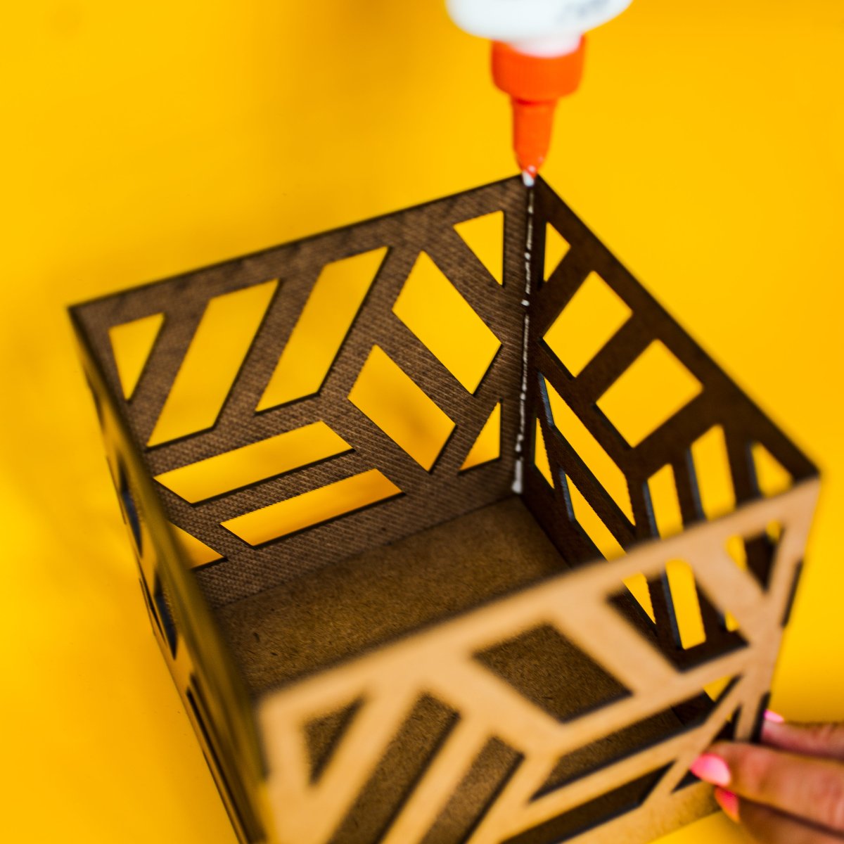 This project takes less than an hour to complete. The final shadow box is an 8-inch cube.