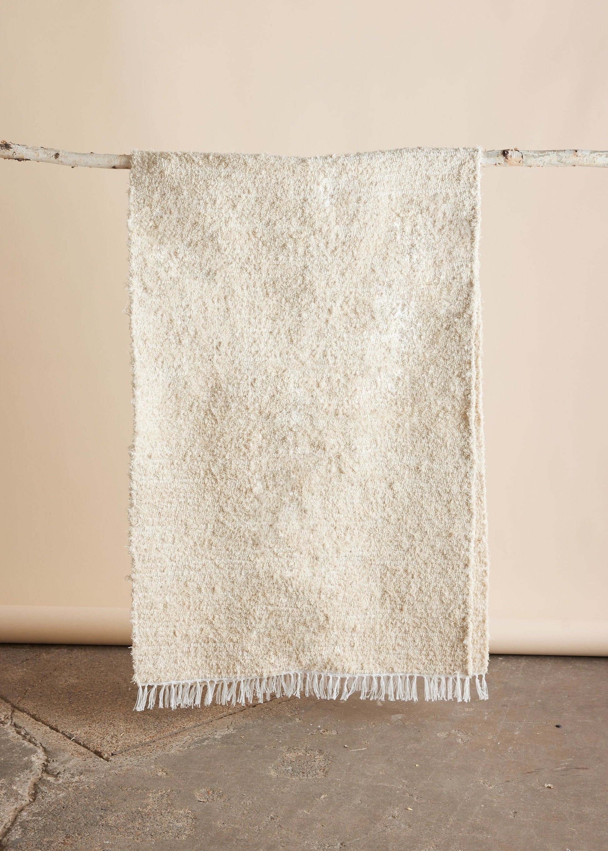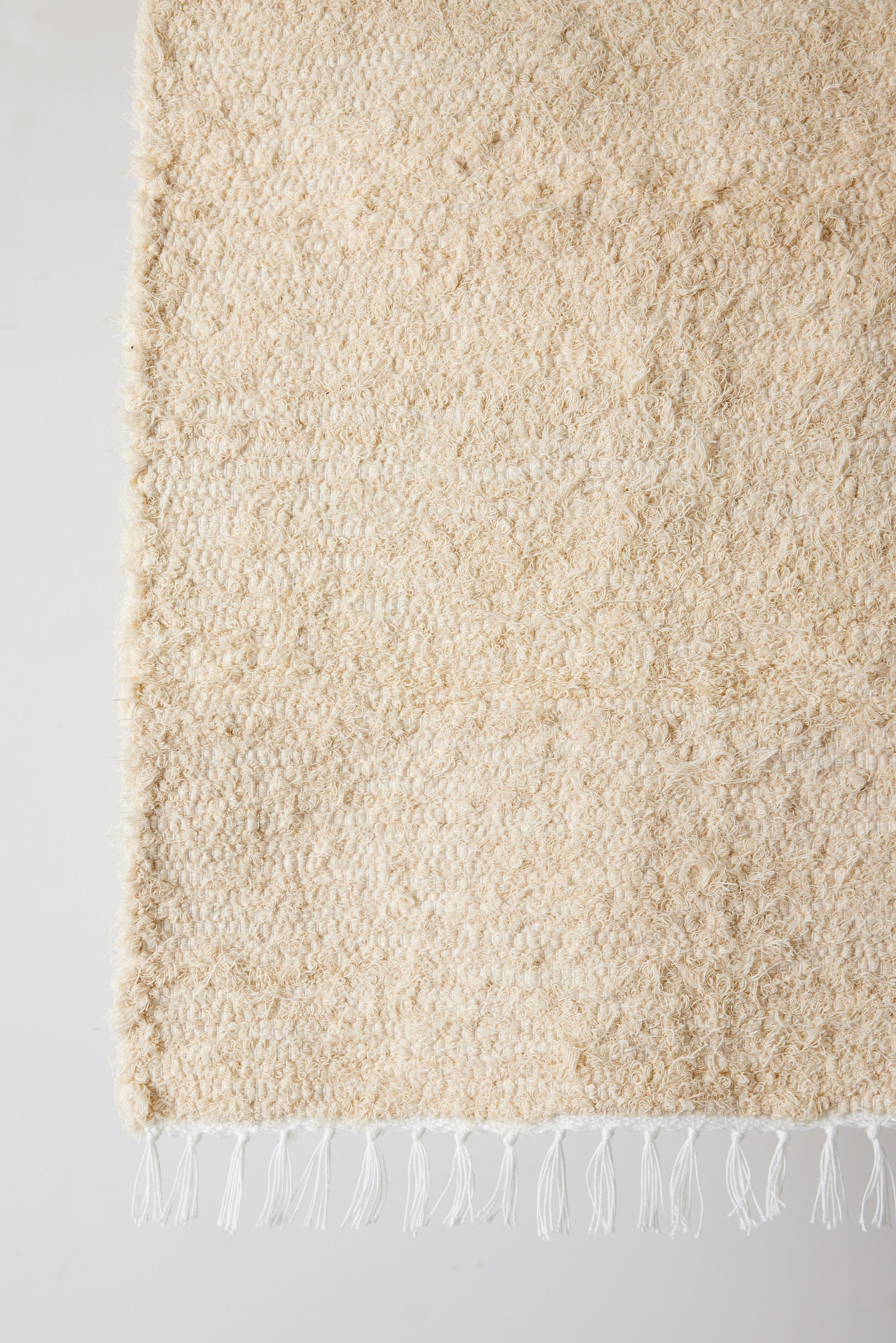 Discover sustainability with the Tabby Shag Runner, a handwoven cotton rug crafted from reclaimed cotton selvedge in a natural ecru color. This runner features a light shag texture and is adorned with charming fringes, making it a perfect addition to any space in your home. Its adaptable design exudes a rustic, artisanal vibe. Scan the QR code on the tags to see the artisan weaver who created your specific piece.