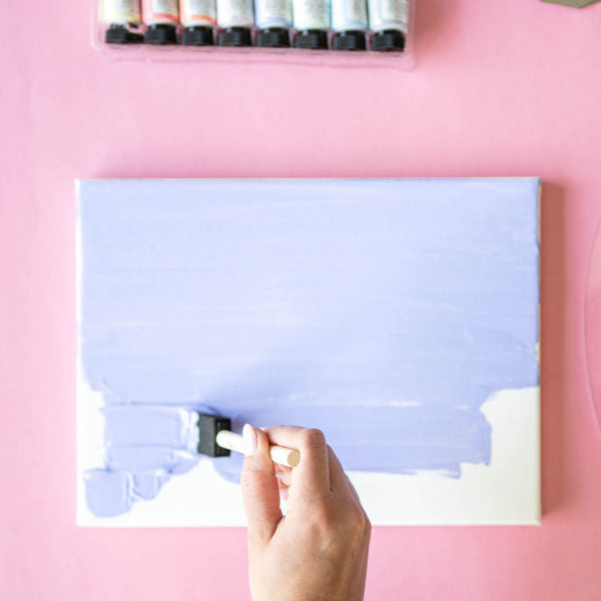 This craft kit includes 12 colors of paint, 500 grams of modeling paste, five palette knives, and two canvases. Crafters will need paper towels.