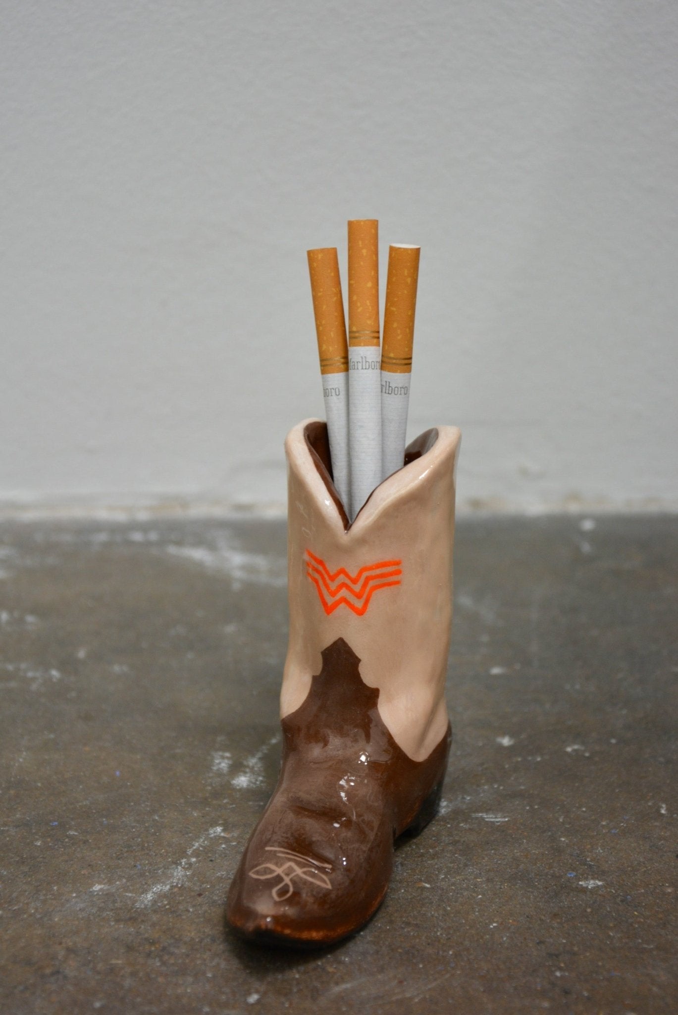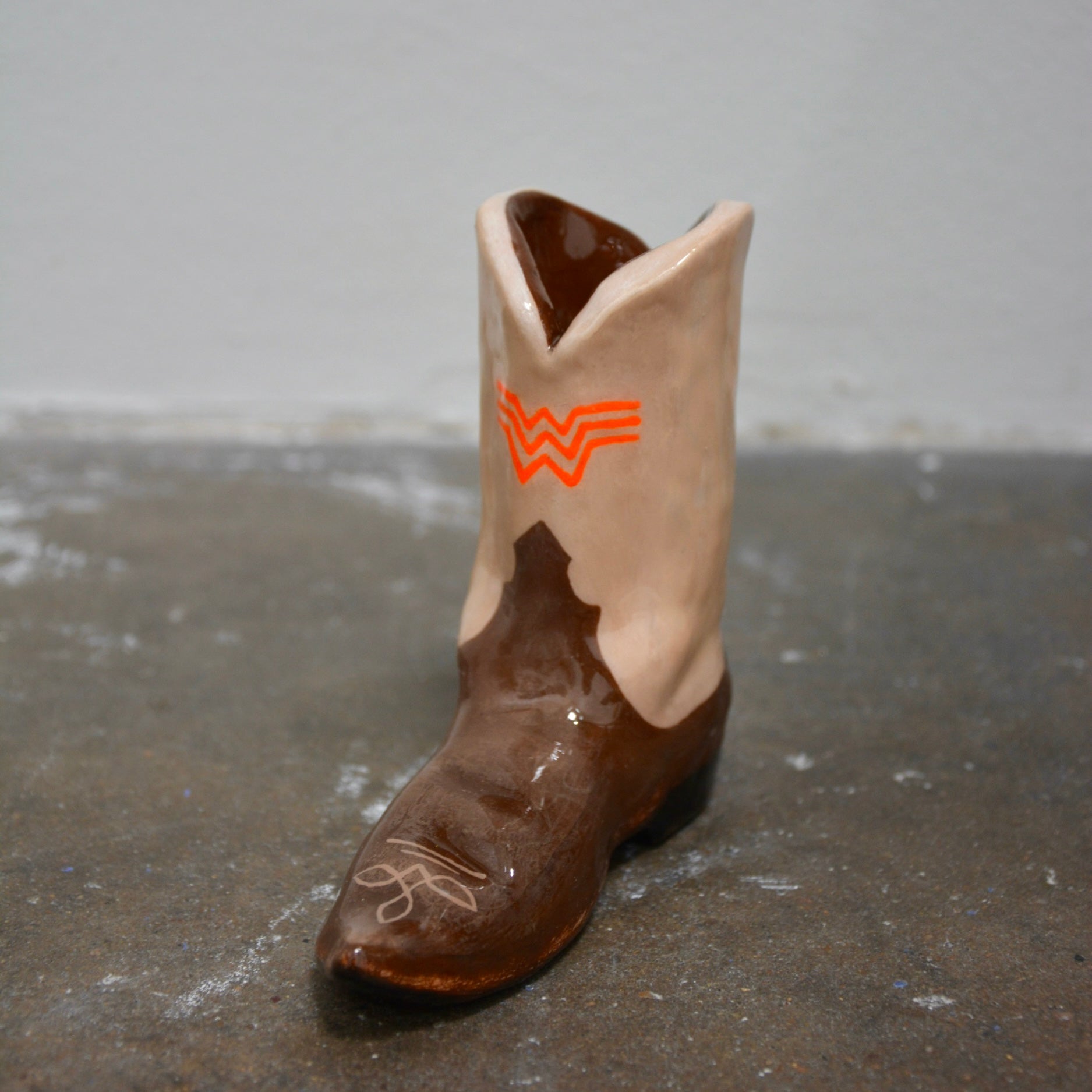 Warning: May cause sudden urges to order a patty melt and write a country song about it… This ceramic piece resembles a worn cowboy boot, perfect for storing matches or your vices ;)